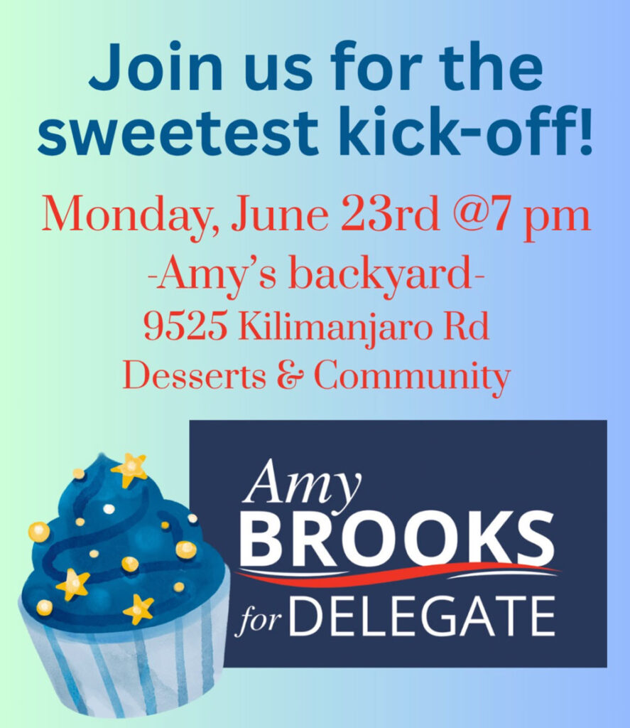 Join us on Monday, June 23rd (7pm) for dessert with HoCo neighbors in Amy’s backyard. This is a free, family-friendly event, but we need money to reach voters. If you can donate, please do!